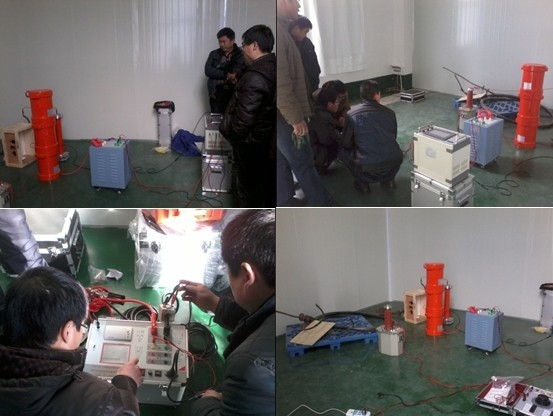 李工到達(dá)現(xiàn)場后,開始詳細(xì)介紹我公司的YTC850-75kVA/25kV變頻串聯(lián)諧振試驗成套裝置。介紹完畢后,李工又詳細(xì)的講解,以及手把手的帶客戶做實驗,直至實驗順利完成。隨后,李工又帶領(lǐng)客戶做了其余十幾個設(shè)備的實驗及安裝調(diào)試。