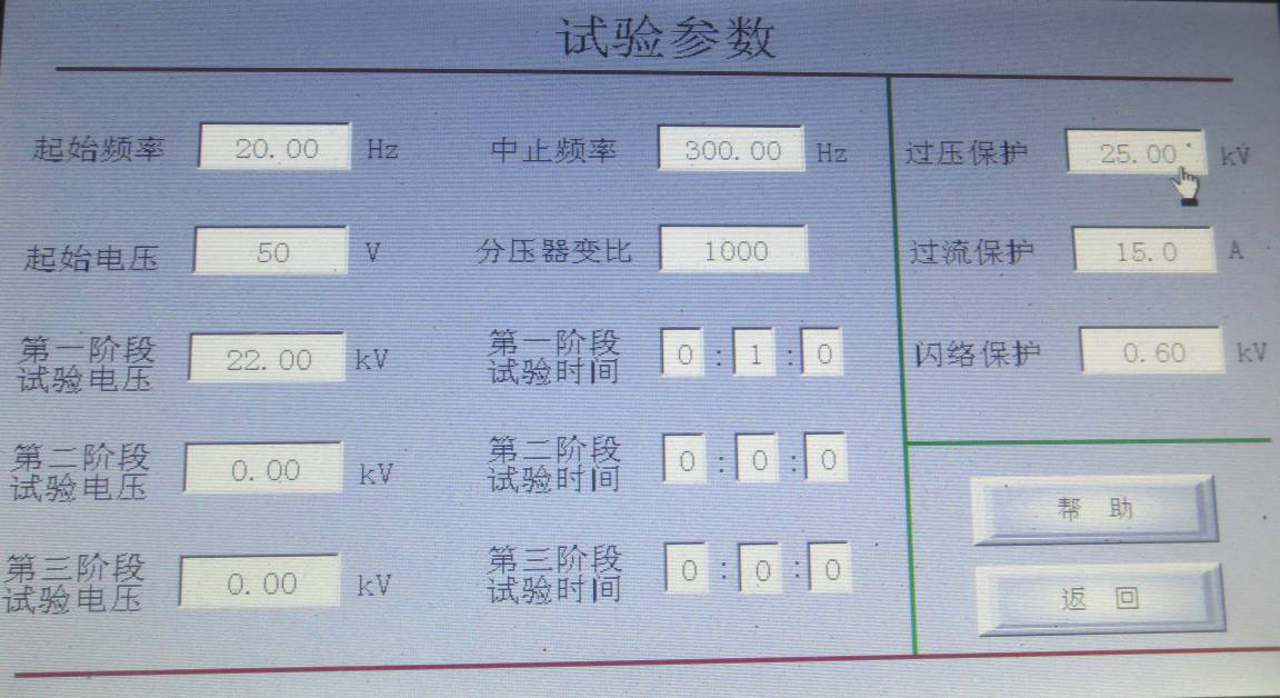 如果沒有階段性耐壓試驗時,只需設置一個階段試驗電壓值和相應的試驗時間,其它階段試驗電壓和試驗時間設為0。