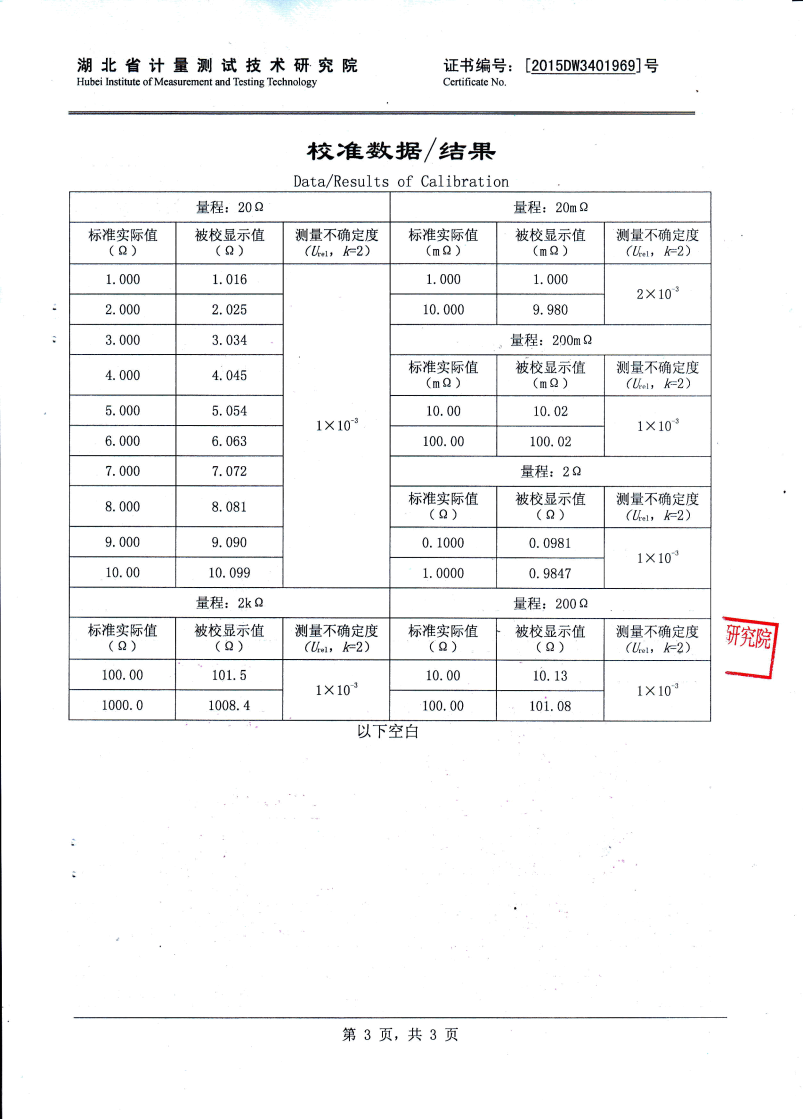 5A 10A 20A 檔最大分辨率1μΩ 50A 100A檔最大分辨率0.1μΩ |