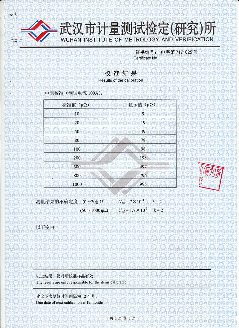 測量范圍 1~1999μΩ