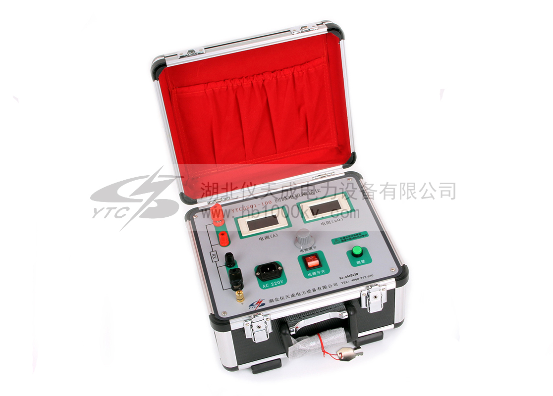 YTC5501回路電阻測試儀是采用數字電路技術和開關電源技術相結合設計而成。它適用于開關控制設備的接觸電阻、回路電阻的測量。其測試電流采用國家標準推薦的直流100A。可在電流100A的情況下直接測得回路電阻和接觸電阻,并用數字顯示出來。該儀器測量準確、性能穩定,適合電力、供電部門現場高壓開關維修和高壓開關廠回路電阻測試得要求。